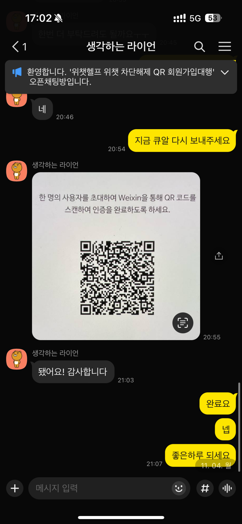 위챗 사용의 어려움이 있다면 언제든