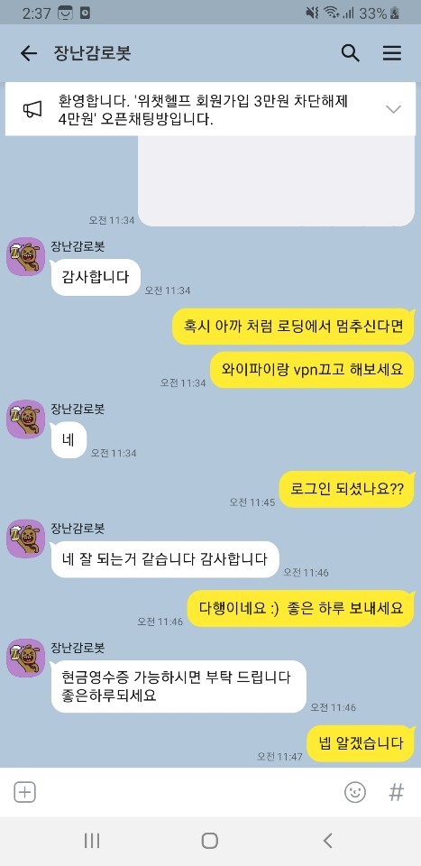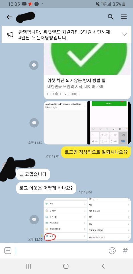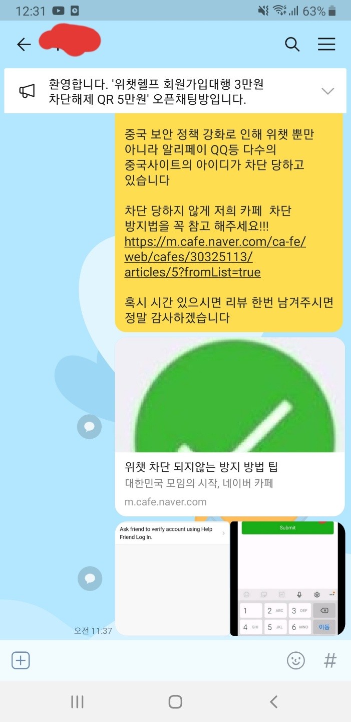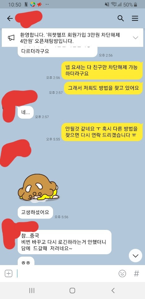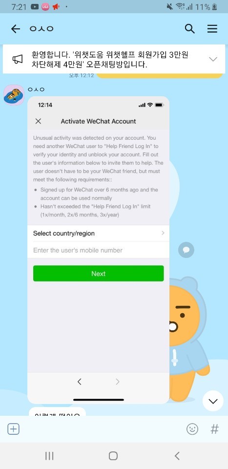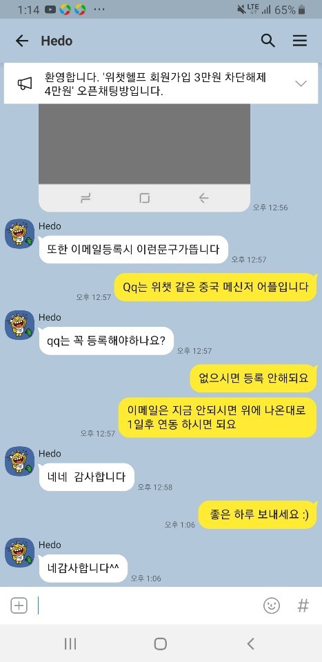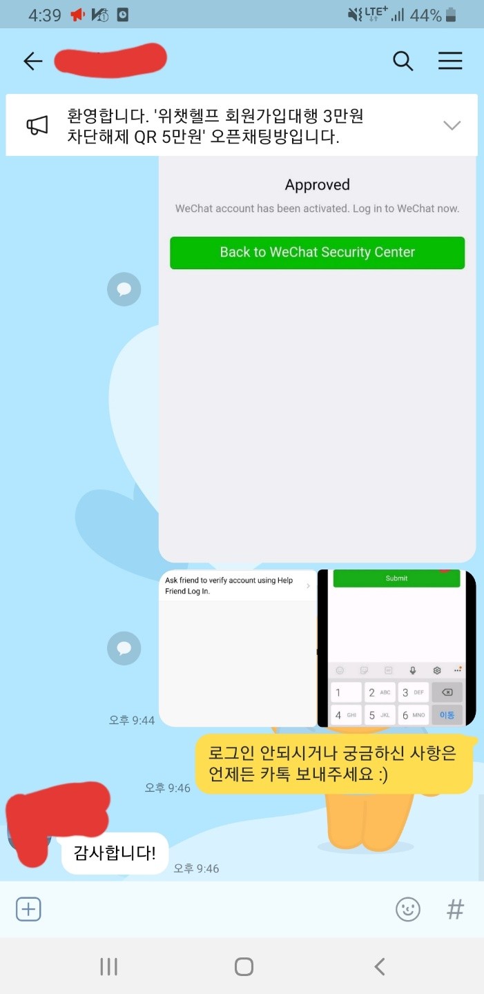 이경우 저희 위챗 헬프에 맡겨 주시면