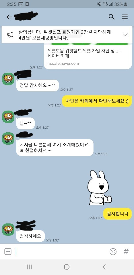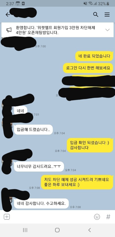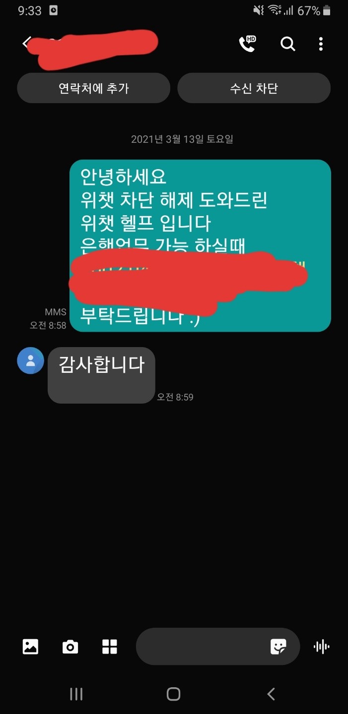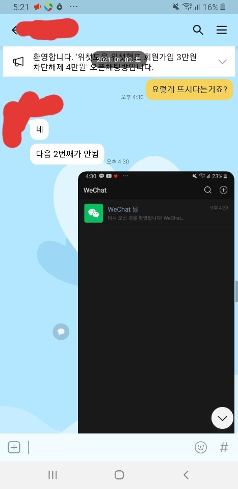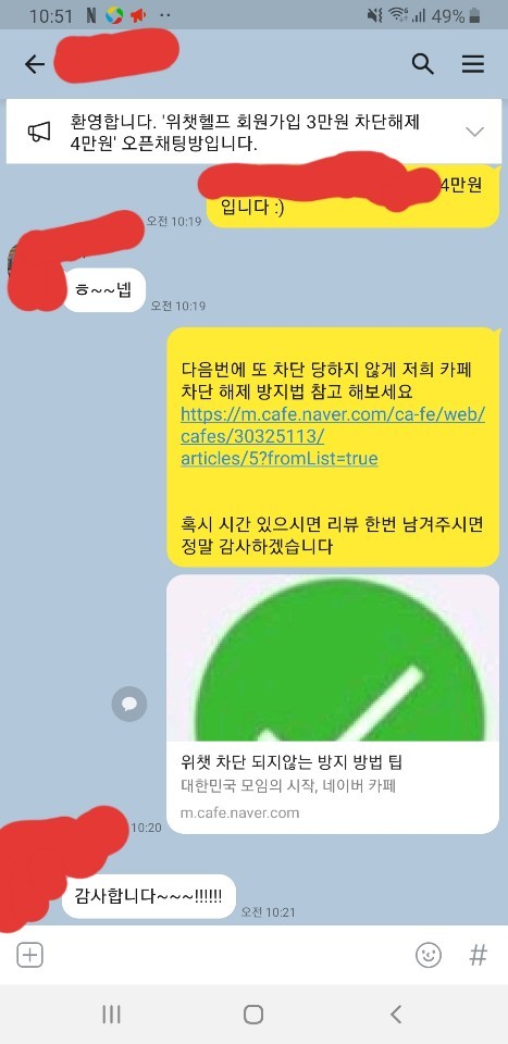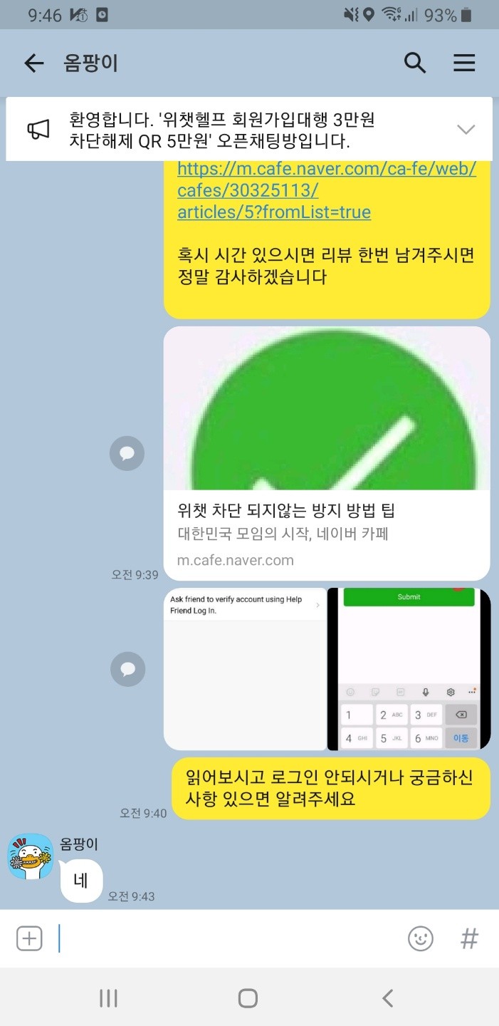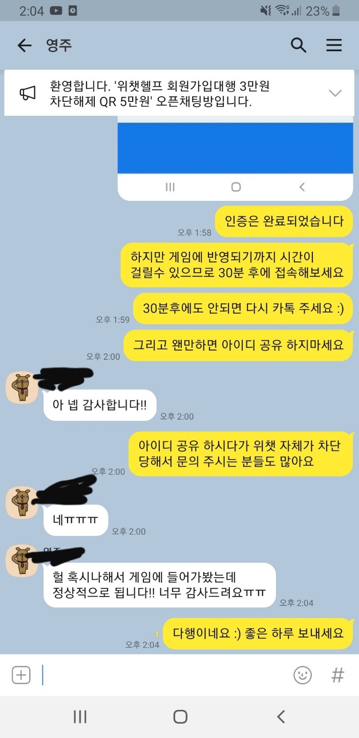 이경우 저희 위챗 헬프에 맡겨 주시면