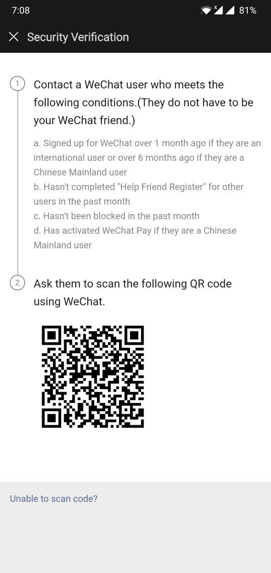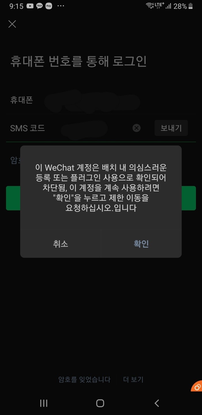 wechat 으로부터 SMS 인증 및 로그인 메세지를 받지 않습니다.