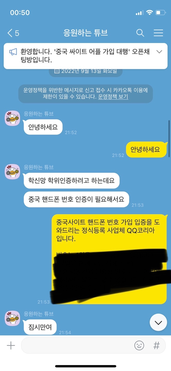 큐큐 코리아는 24시간 중국번호 대행 인증